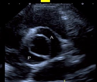 Figure 4: Parasternal short-axis view showing a type 0 bicuspid aortic valve, open during systole.