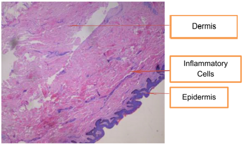 Figure 2: Shows that epidermis and dermis both contain inflammatory cells.