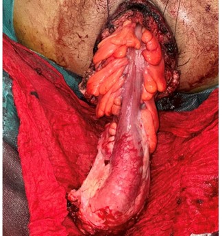 Figure 4: Intraoperative view of the prolapsed rectosigmoid exteriorized through the anal canal.