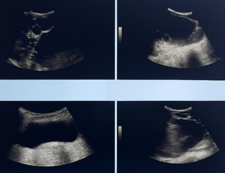 The kidneys were of normal size, with regular contours and good vascular nephrography. Multiple bilateral renal cysts were observed, the largest being located at the lower pole of the right kidney, measuring 24 mm in diameter, with a simple appearance, classified as Bosniak I.