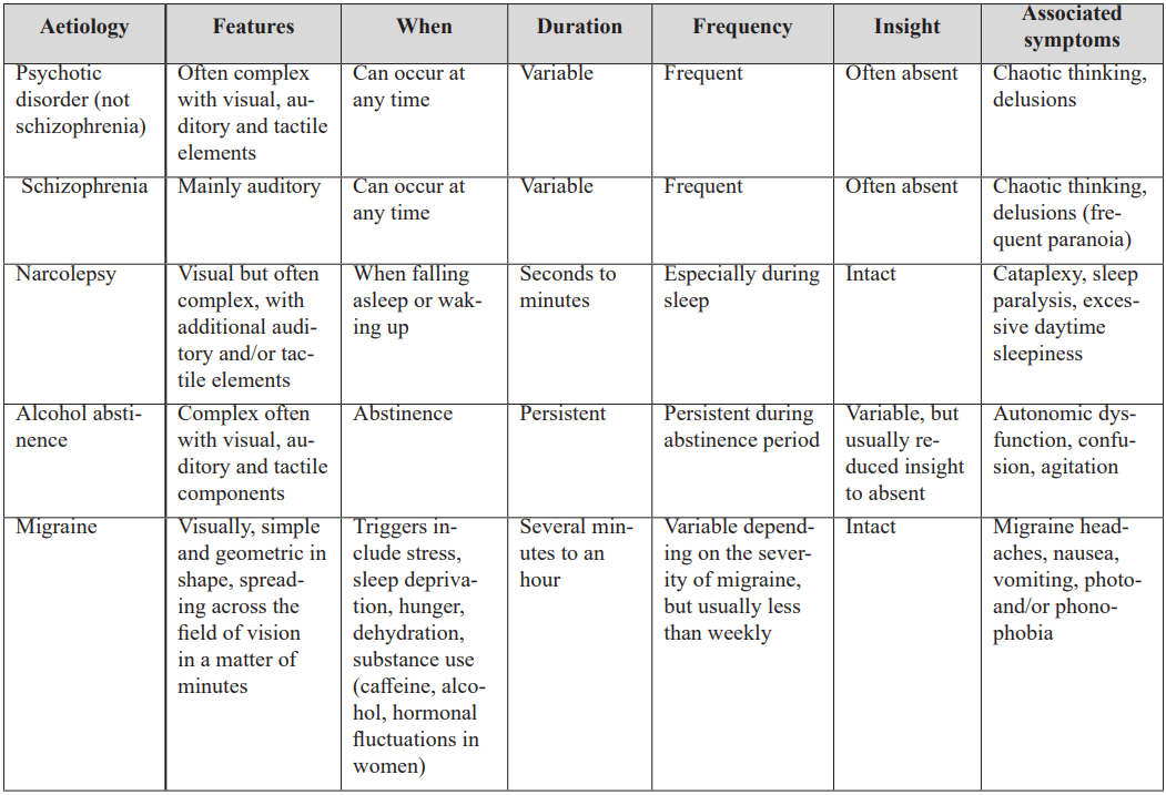 Table 1: Conditions that are (or may be) associated with hallucinations.