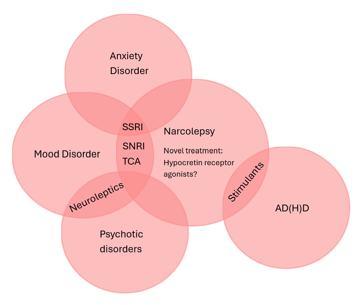 Figure 2: Overlap/relationship between various psychiatric disorders and narcolepsy.
