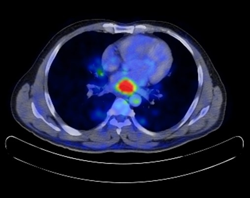 Figure 1: PET CT scan showing hyper metabolic mid to distal oesophageal thickening.