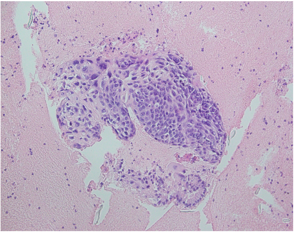 Figure 3: H/E stains slide of pancreatic mass suggestive of squamous cell carcinoma staining positive for p40.