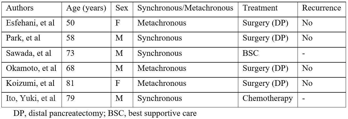 Table 1: Reported cases of pancreatic metastasis from esophageal squamous cell carcinoma.