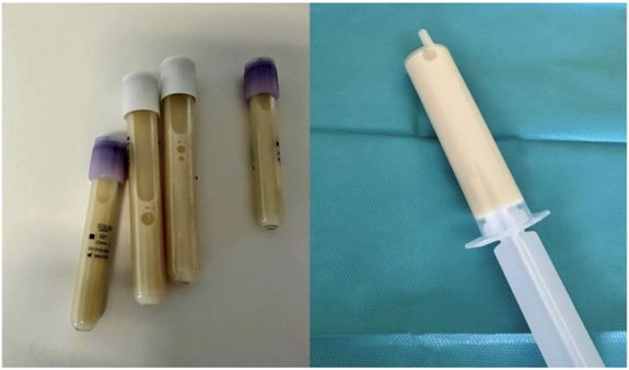 Figure 2: Tubes of milky pleural fluid obtained after thoracentesis.