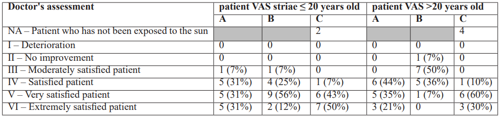 VAS scale of the patient and doctor – Stretch marks on the glute that are up to 20 years old