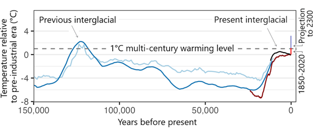 Figure 2: Variation of average global temperature over last 100,000 years.