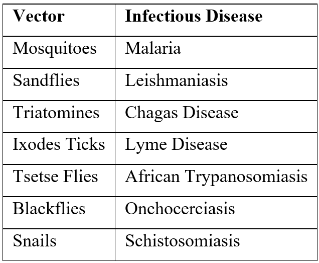 Table 1: Examples of vector-borne diseases sensitive to climate change.