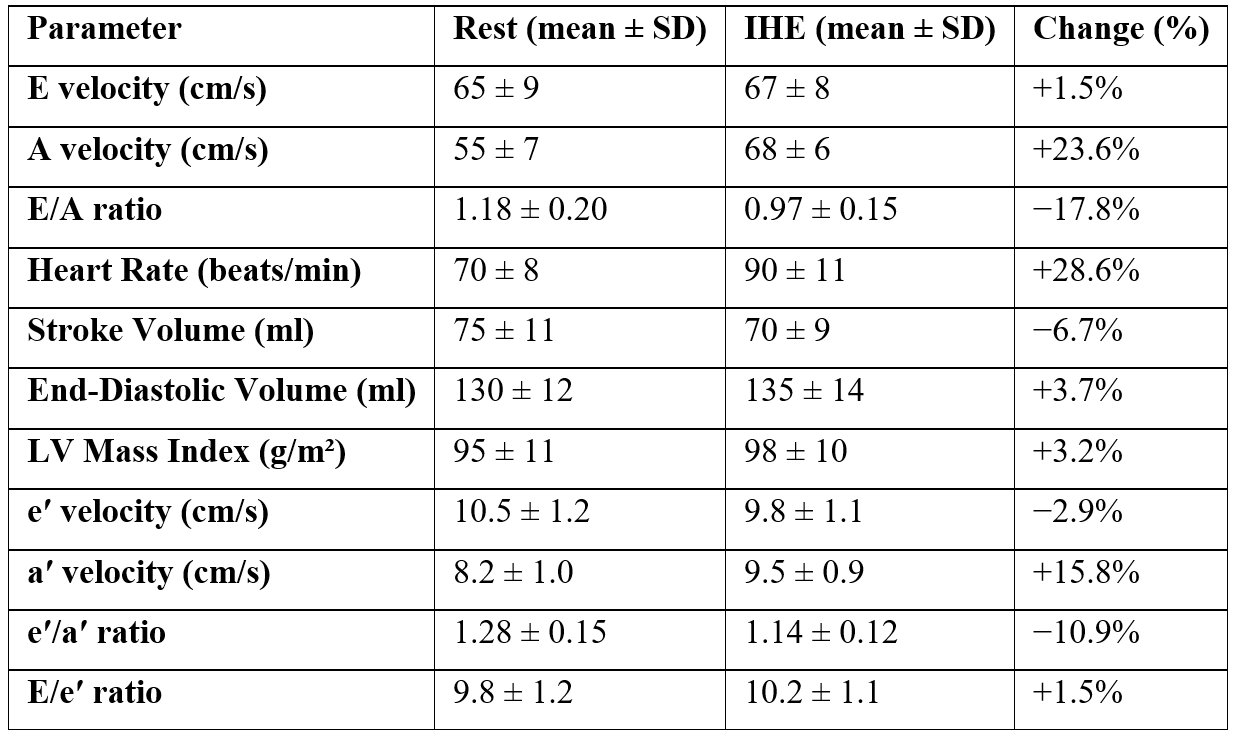 Table 3: Changes in Echocardiographic Parameters at Rest and During IHE.