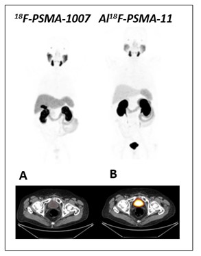 Conclusion: 18F-PSMA-1007 and 18F-AlF-PSMA-11PET/CT seem to be clinically equivalent imaging techniques and have relevant sensitivity for the detection of PCa lesions. Low urinary excretion of 18F-PSMA-1007 present clear advantage for pelvic interpretation.