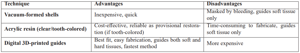 Table 2: Surgical guides for esthetic crown-lengthening.